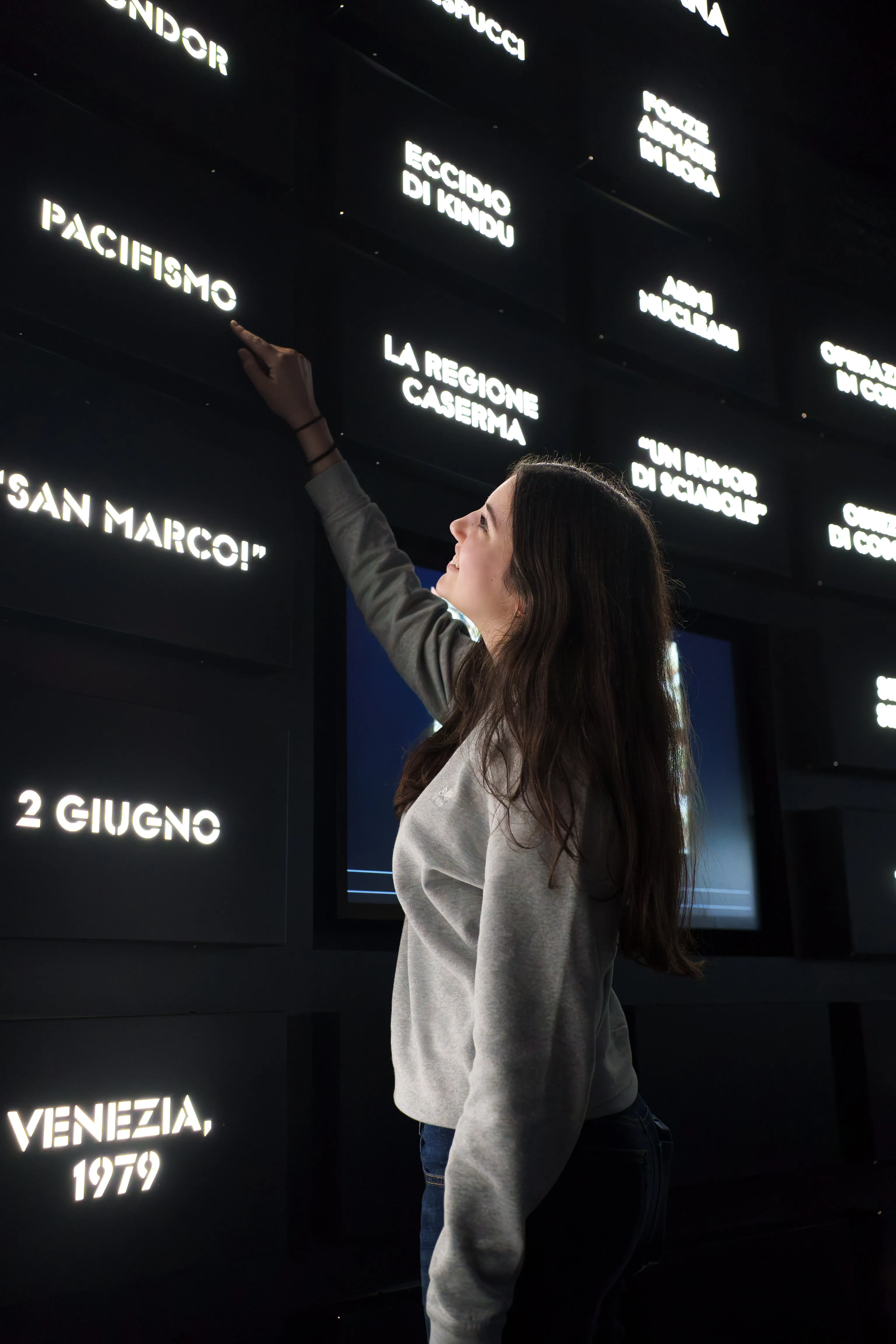 The journey through everyday life also revealed the importance of entertainment in Italian culture. Through interactive installations, students explored how music and television shaped shared memories, from the iconic Sanremo Music Festival to the rise of popular variety shows. At one point, the museum filled with the rhythm of “A far l’amore comincia tu” by Raffaella Carrà, and the students could not resist joining in, turning a moment of history into a spontaneous dance.