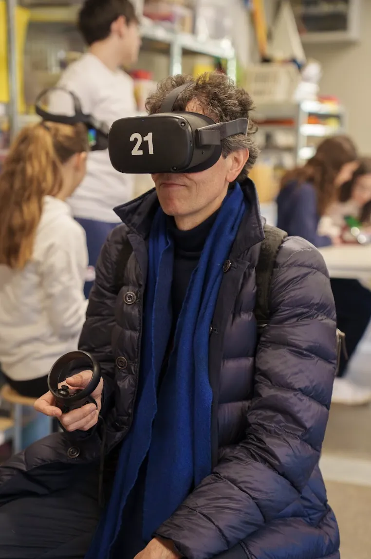 Lower Secondary 3 students explored digital manipulation using CoSpaces, a platform for creating interactive 3D environments. They challenged parents and peers to differentiate between real images and those altered or generated by artificial intelligence (AI). During the workshop, two students shared key techniques for identifying fake content: details such as distorted hands, unrealistic hair, and inconsistencies in the background can often reveal an artificially generated image. This workshop reversed traditional roles, as parents became students, experiencing firsthand the knowledge their children had developed in the classroom. It was a valuable opportunity for them to engage with their children’s learning, witnessing their progress while acquiring new insights themselves.