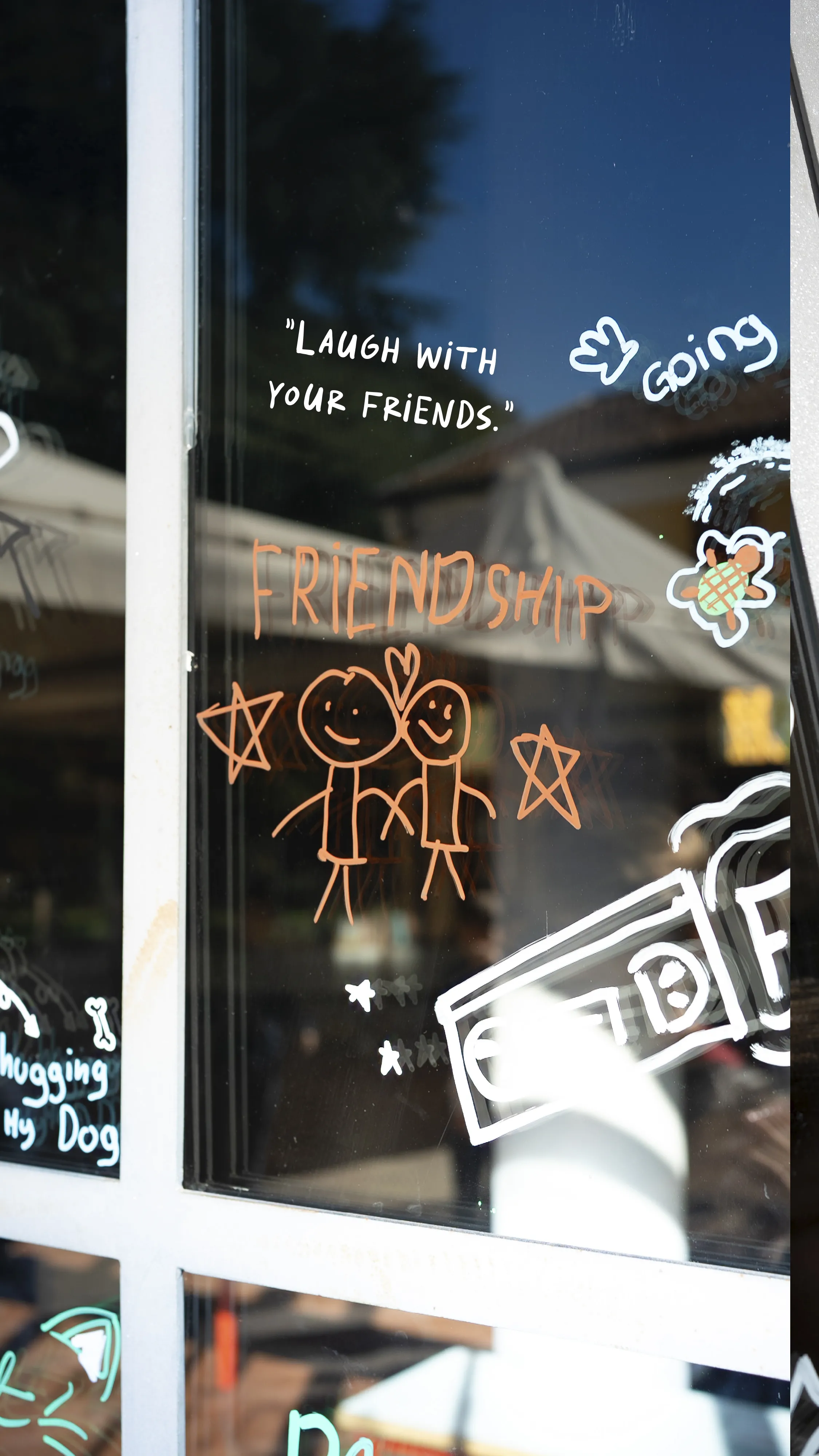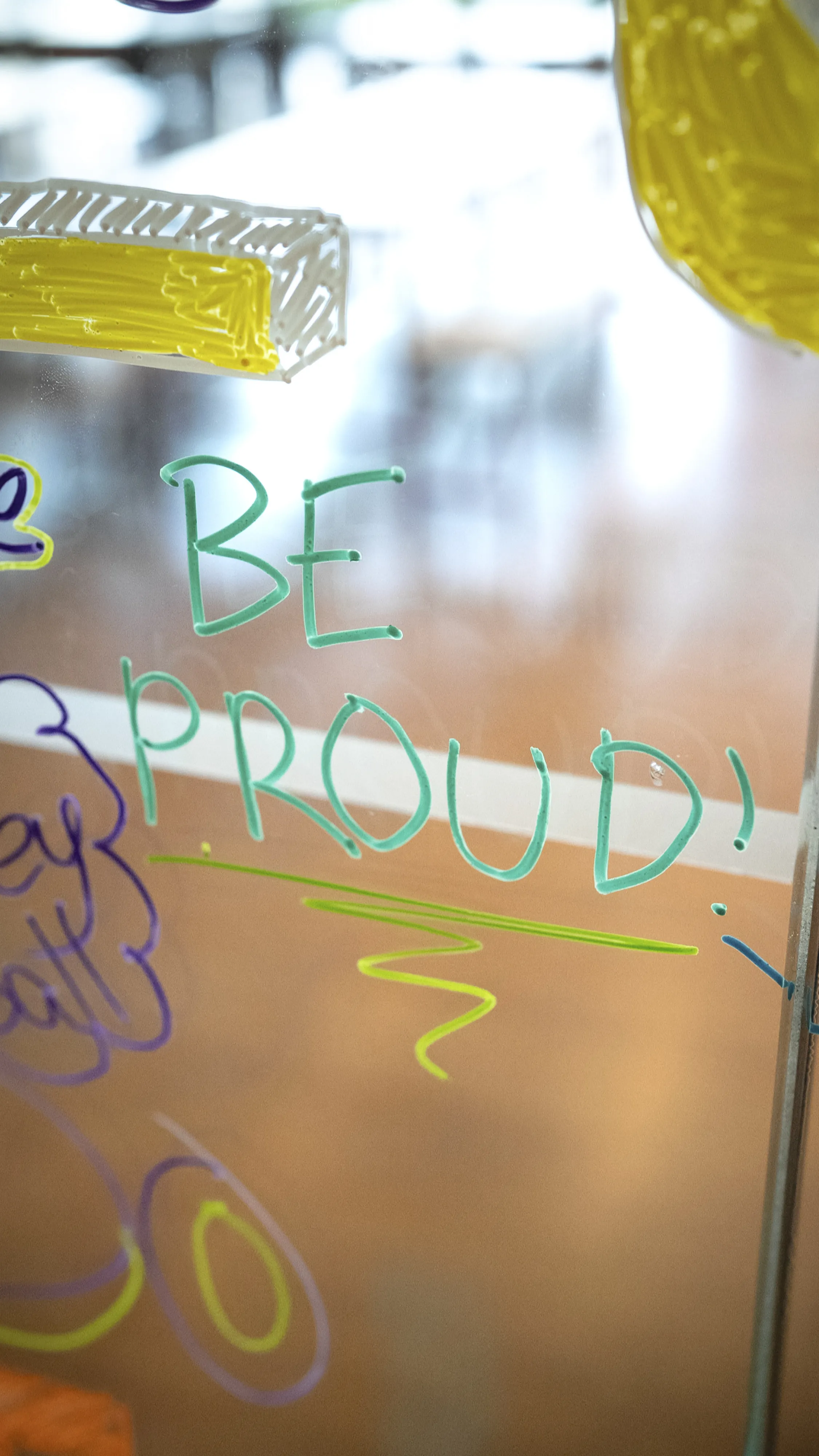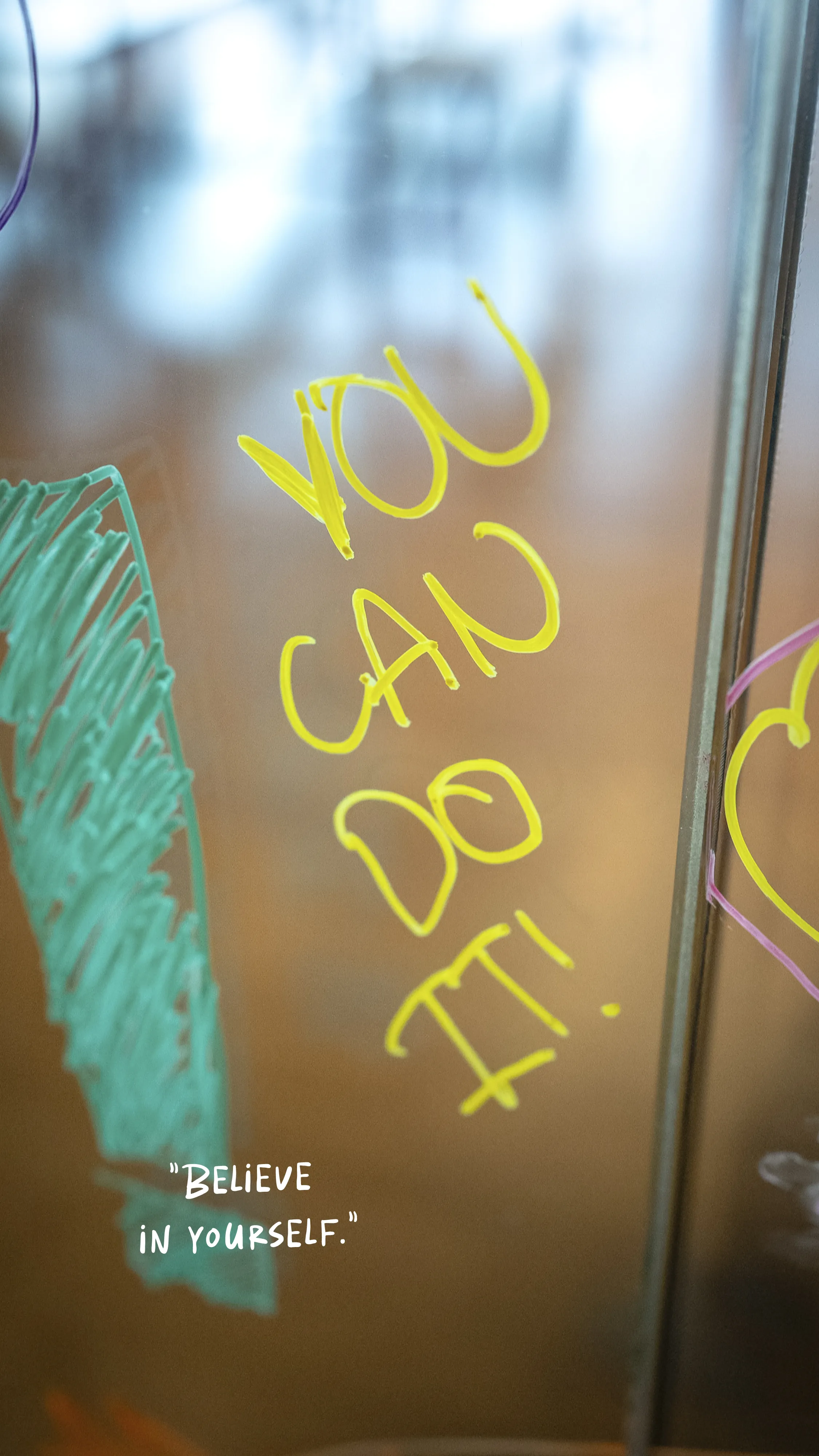 On the school’s glass walls, we wrote with colorful markers a sentence that carries a universal message:
