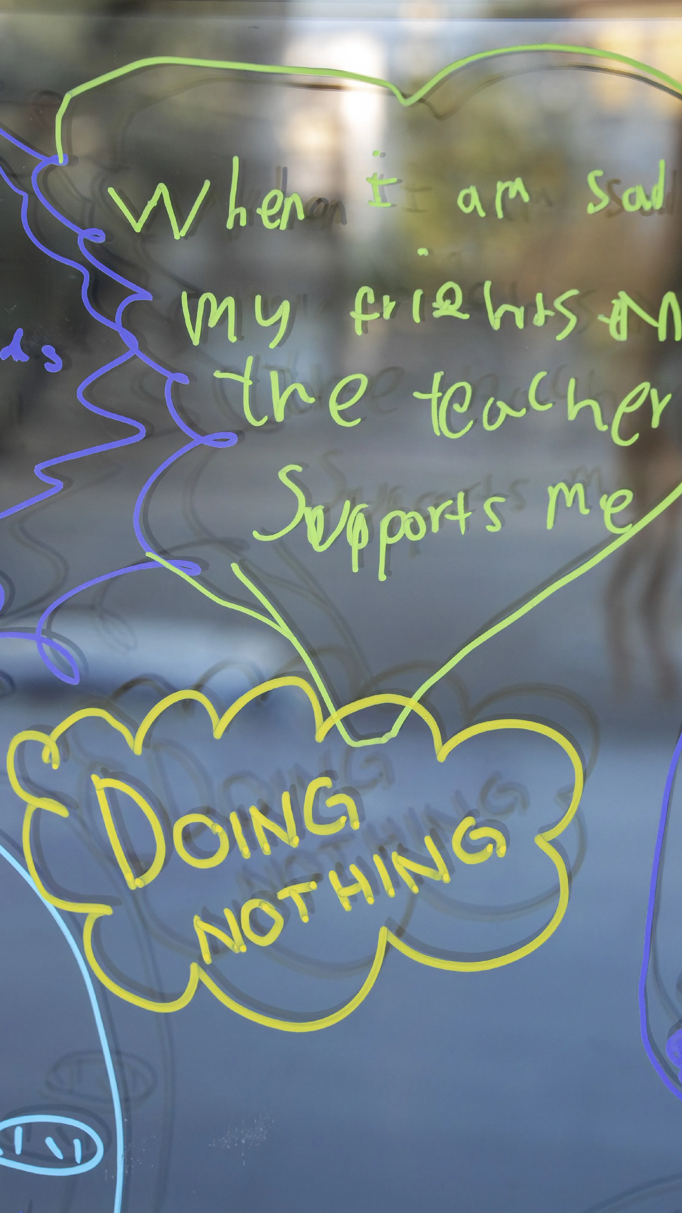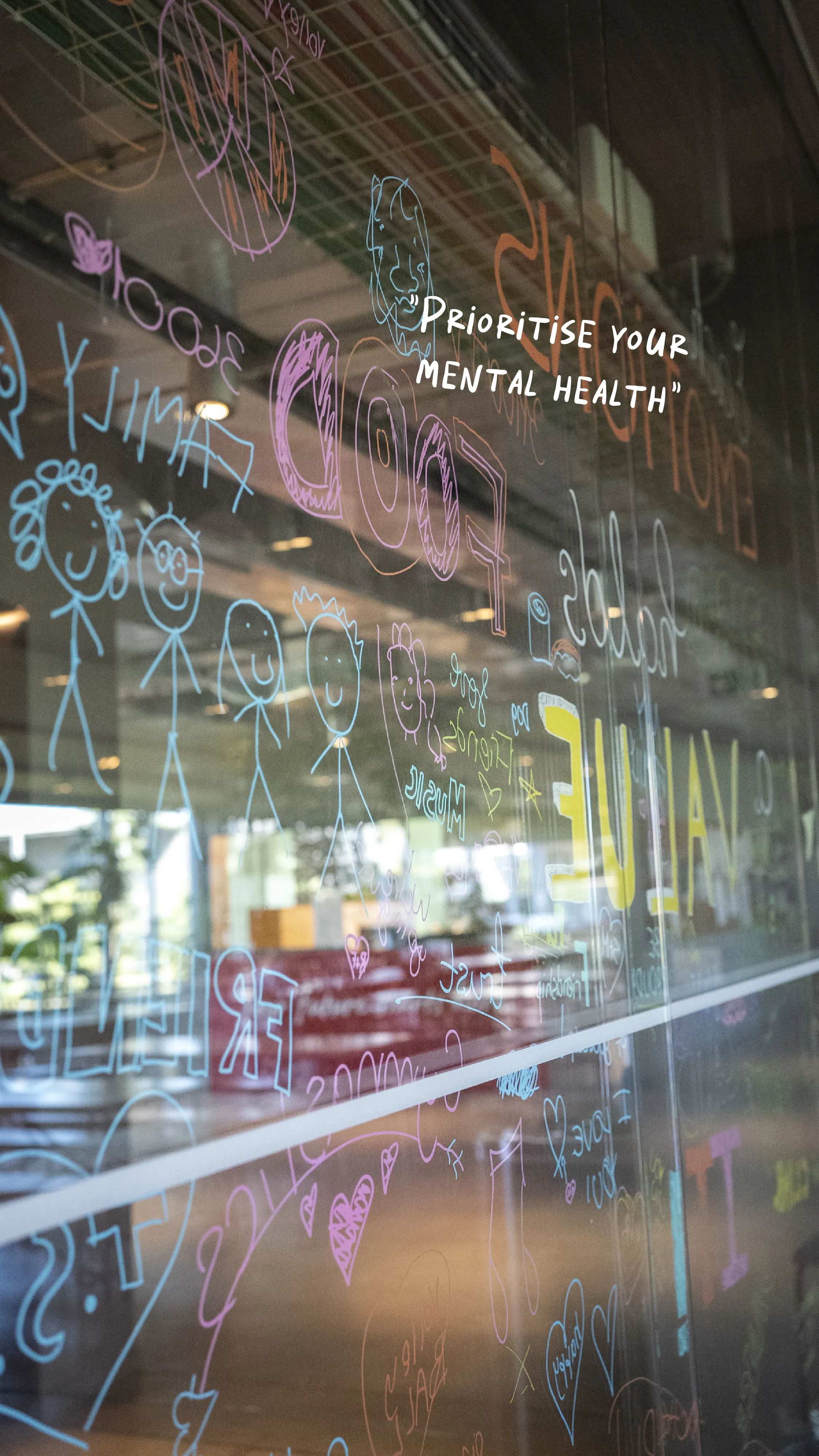 Within a few hours, the transparent surfaces became a vibrant mural: a mosaic of authentic experiences telling what truly helps us get through challenging times.
