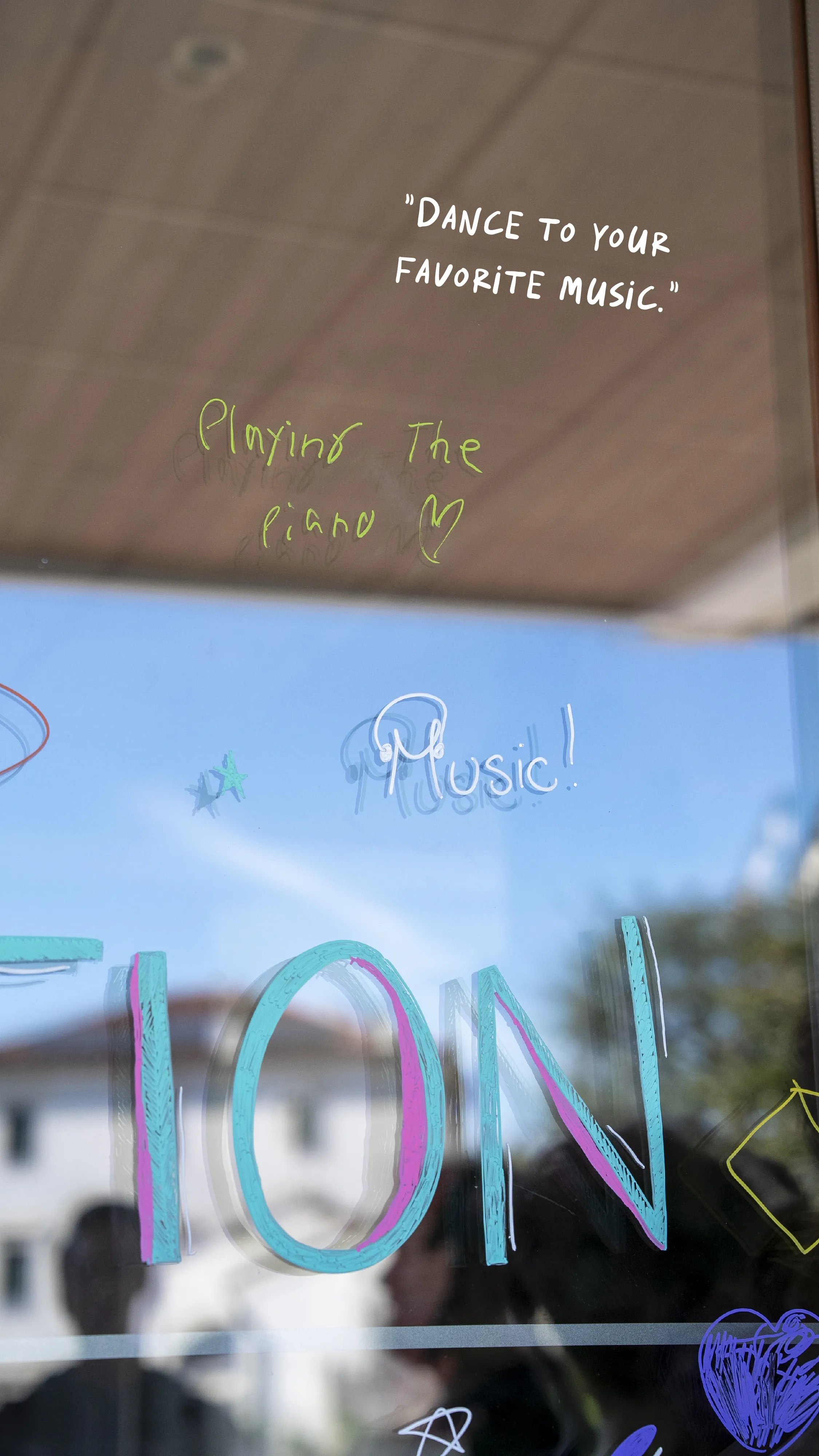 From that moment, the windows turned into a collective dialogue made of words, colors, and emotions. An open space where anyone could leave a mark: a thought, a memory, a small gesture of comfort.
