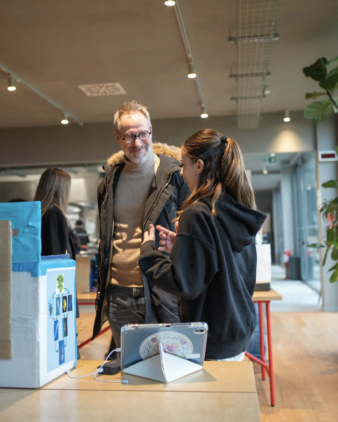The projects were presented to students, parents, and teachers, turning the exhibition into a moment of genuine exchange. Not just a display, but a dialogue: explaining, answering questions, and reshaping one’s thinking through the perspective of those listening.