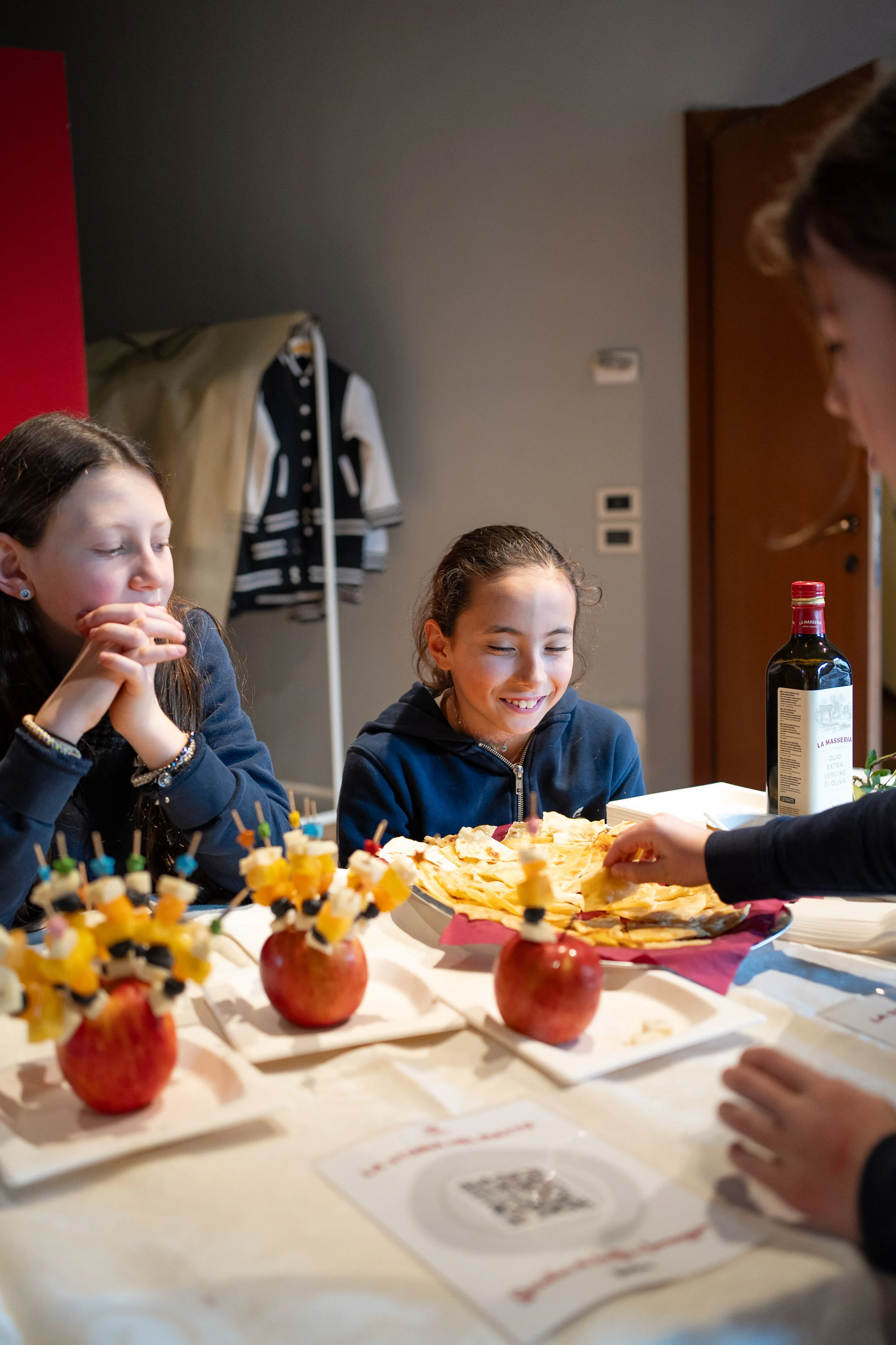 Visitors were able to taste the dishes, discover historical information through infographics created by the children, and explore maps and materials describing the society, activities, and territory of each population. Next to each recipe, a QR code gave access to video tutorials made by the students, where they explained step by step how the dishes had been prepared.“All the recipes were delicious,” Achille comments enthusiastically. But the most surprising part, Mia says, was “discovering that many recipes of the ancient Italic peoples are still used today.”