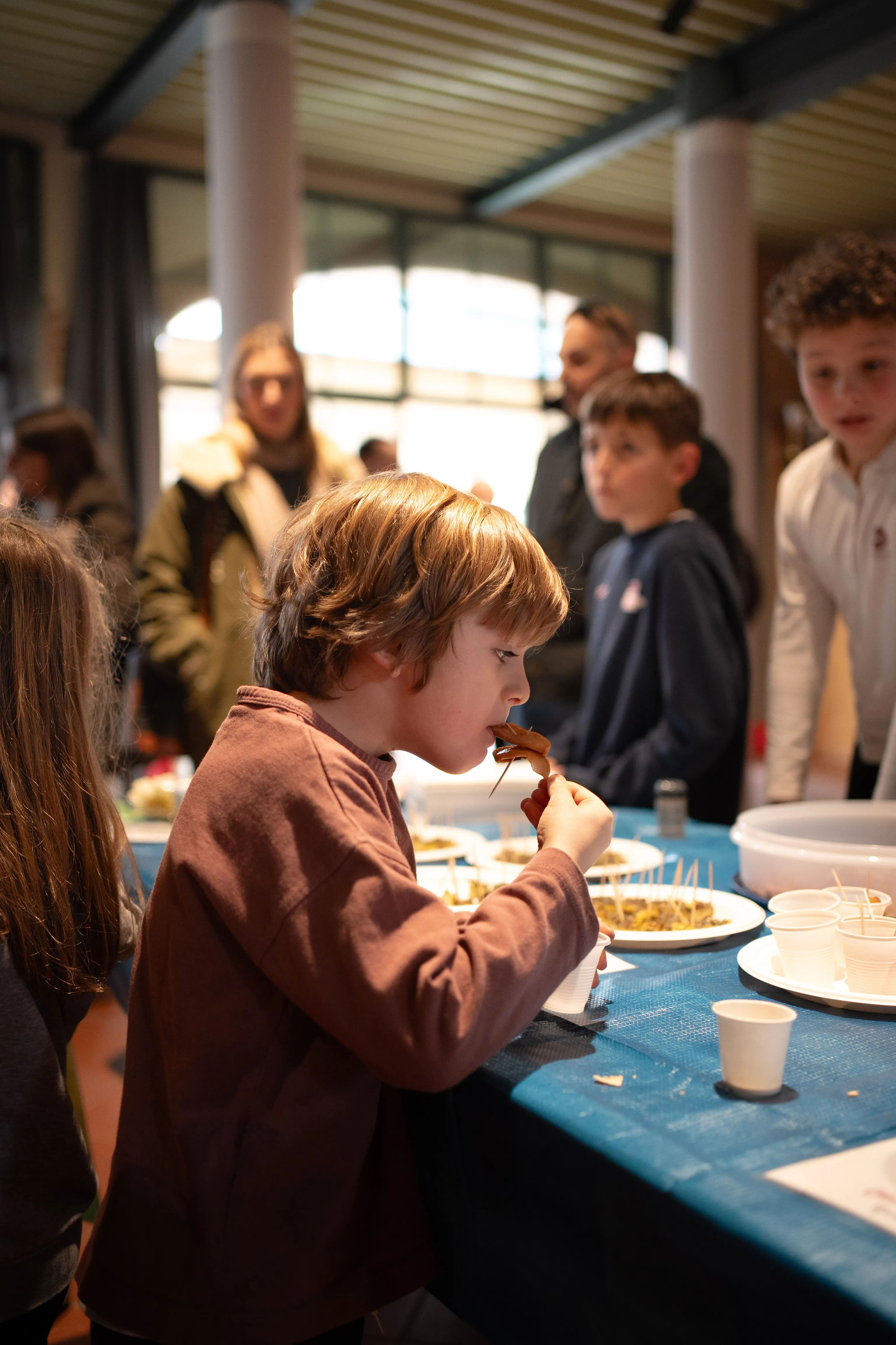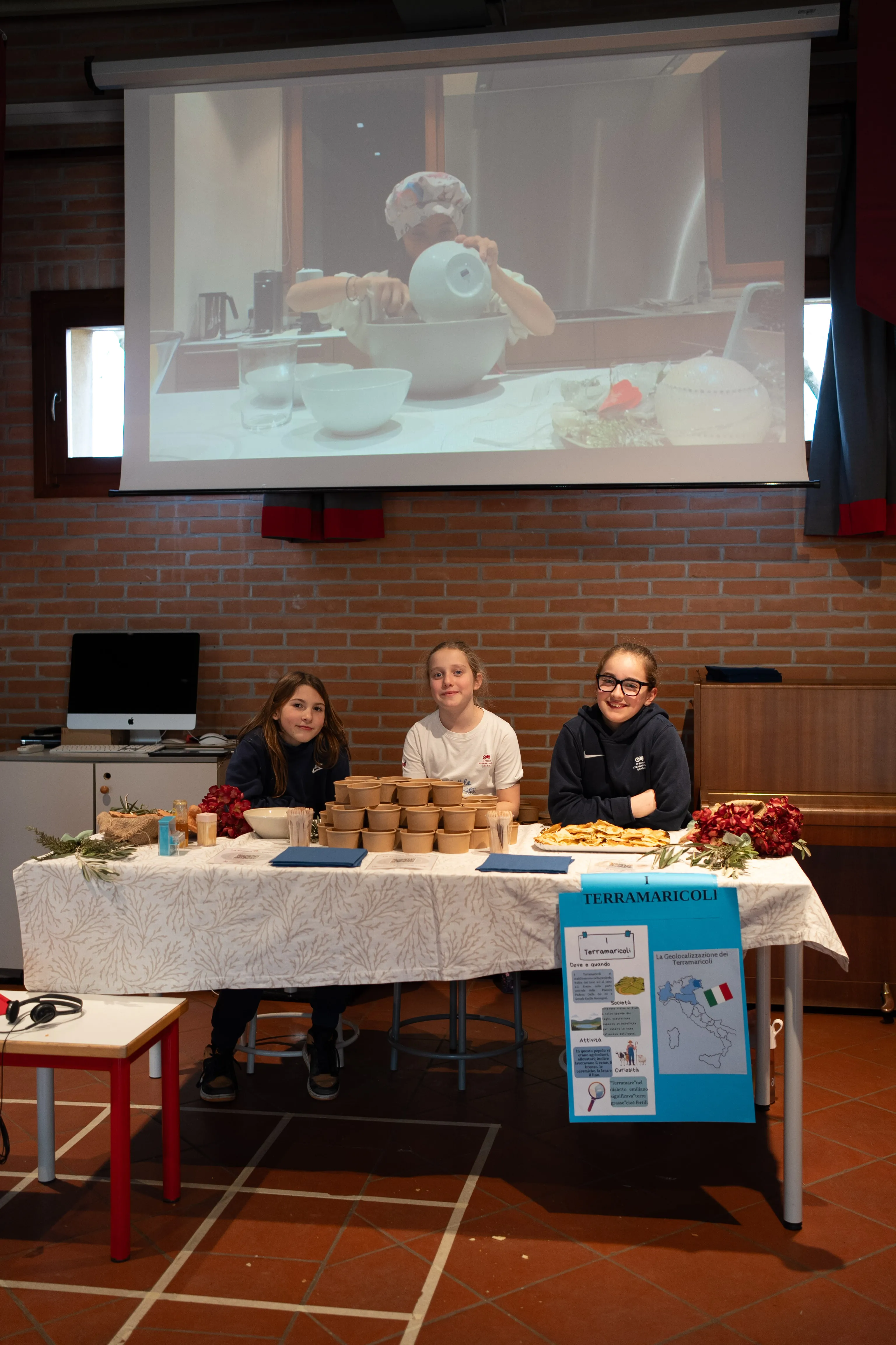 Visitors were able to taste the dishes, discover historical information through infographics created by the children, and explore maps and materials describing the society, activities, and territory of each population. Next to each recipe, a QR code gave access to video tutorials made by the students, where they explained step by step how the dishes had been prepared.“All the recipes were delicious,” Achille comments enthusiastically. But the most surprising part, Mia says, was “discovering that many recipes of the ancient Italic peoples are still used today.”