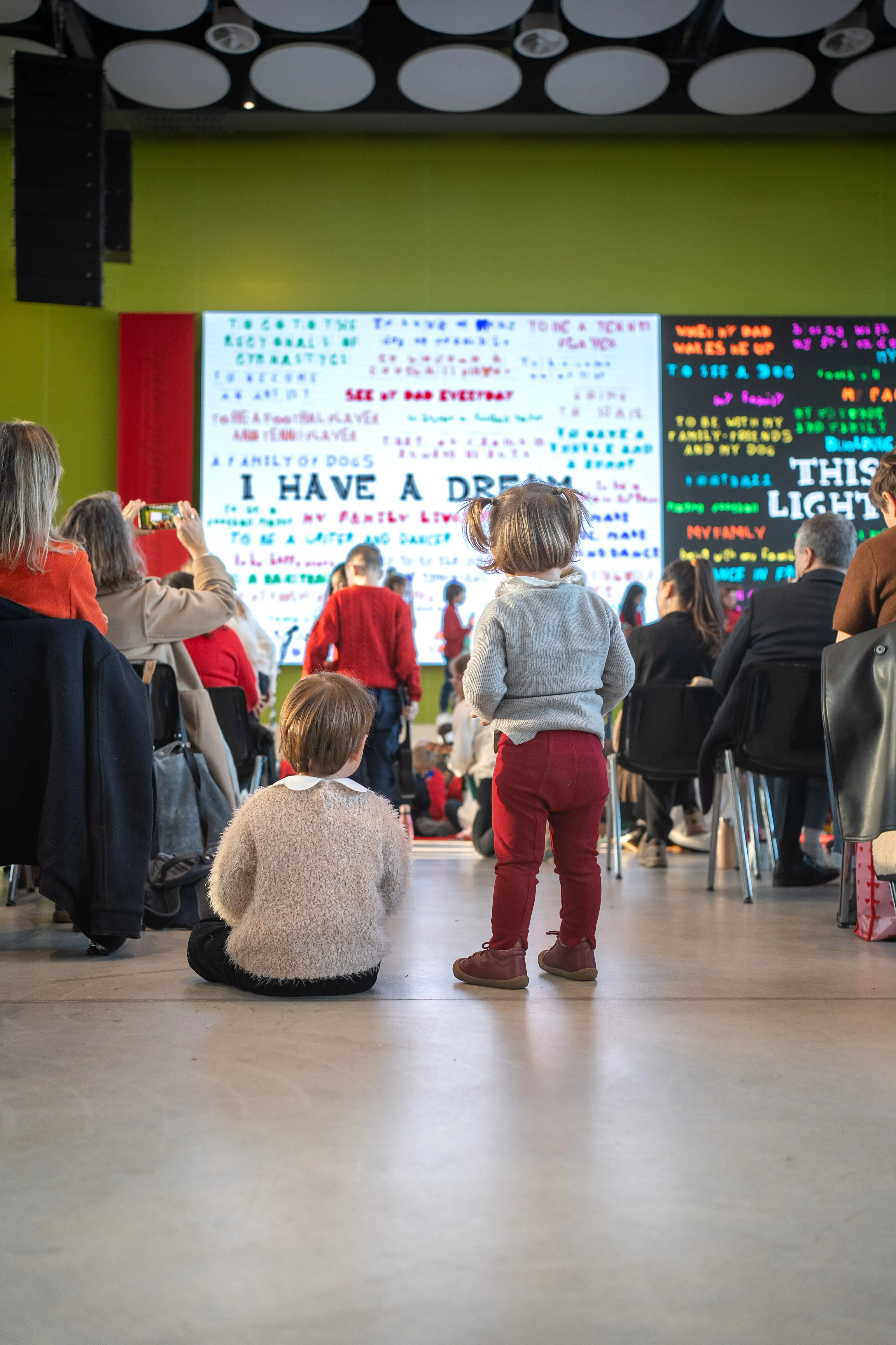 Each class worked on a verse of the poem and on the values it conveys: altruism, sharing, dreams, love, resilience and positivity, translating them not only into songs, but also into visual elements designed to accompany and enhance the musical performances. The concert thus became an immersive experience, where what was heard and what was seen spoke the same emotional language.