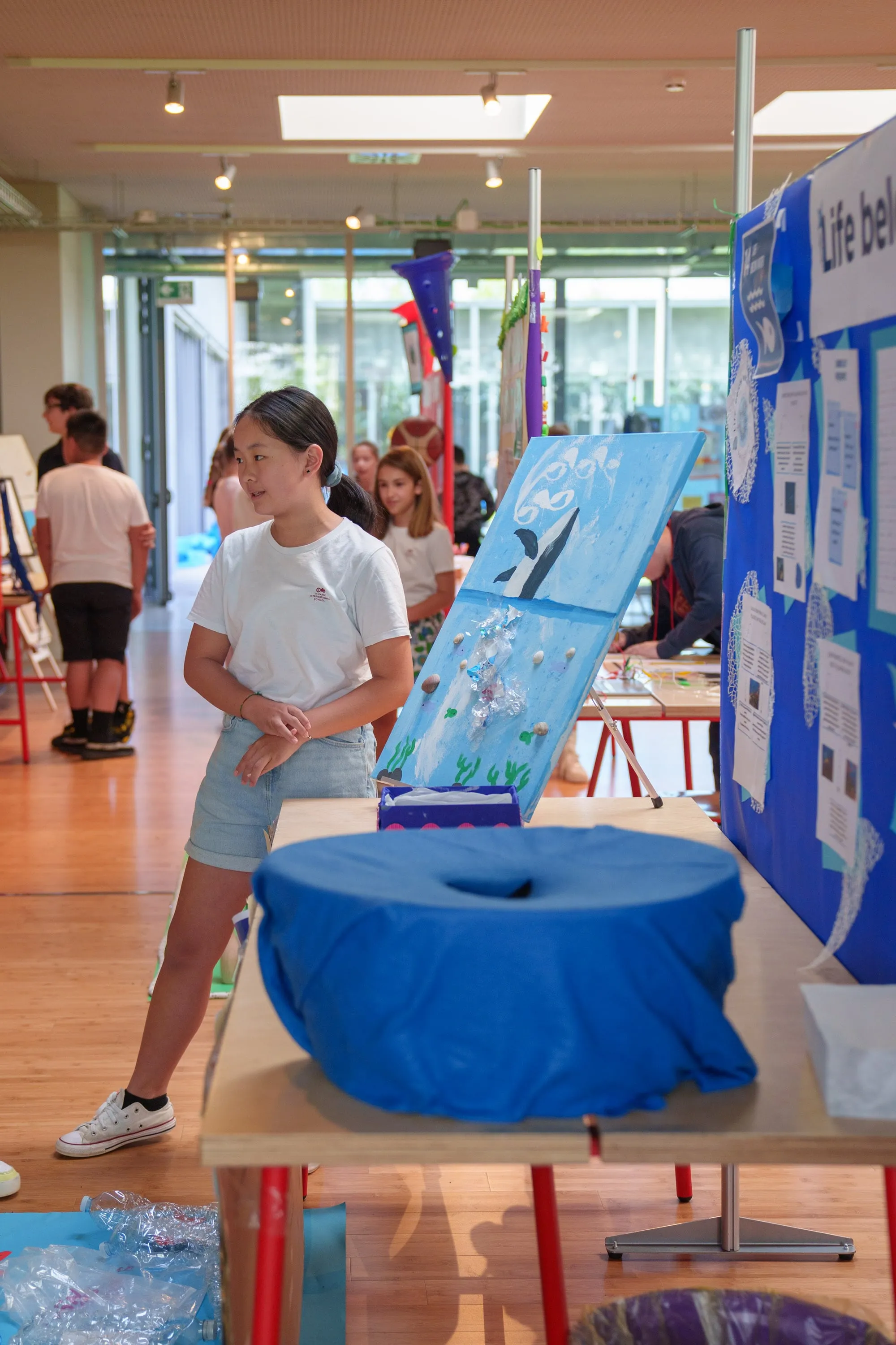 At this year’s Exhibition, students presented a wide array of topics. For instance, Lorenzo, a Y5 student, highlighted the reasons behind his work on “The Power of Art”. He affirmed:“Art is one of my greatest passions and I want to make people aware of the impact it has on school education. This is why everybody should promote it and fight for it”. Another student, Wan Yu, described her project about “Photography in Gender Equality”. She stated:“I focused on the way women are treated, and the message I want to convey is the underestimation of woman power as humans. I want to fight it”. Also Matilde has the pleasure of telling her project on climate action. It’s called “Space Exploration” and the girl told us that:“For my Exhibition, I chose space, because in January I went to Florida at the Cape Canaveral, where there is the Kennedy Space Center. Then, I recreated the space in a box with all the planets and the Galaxy inside“. Xi Yi chose the topic of ocean pollution with her project called “Life Below Water”. She said:“On World Ocean Day on June 8th, you can go to the beach to get all trash and recycle it. Also, when you go shopping, you can use and reuse your own shopping bag”.