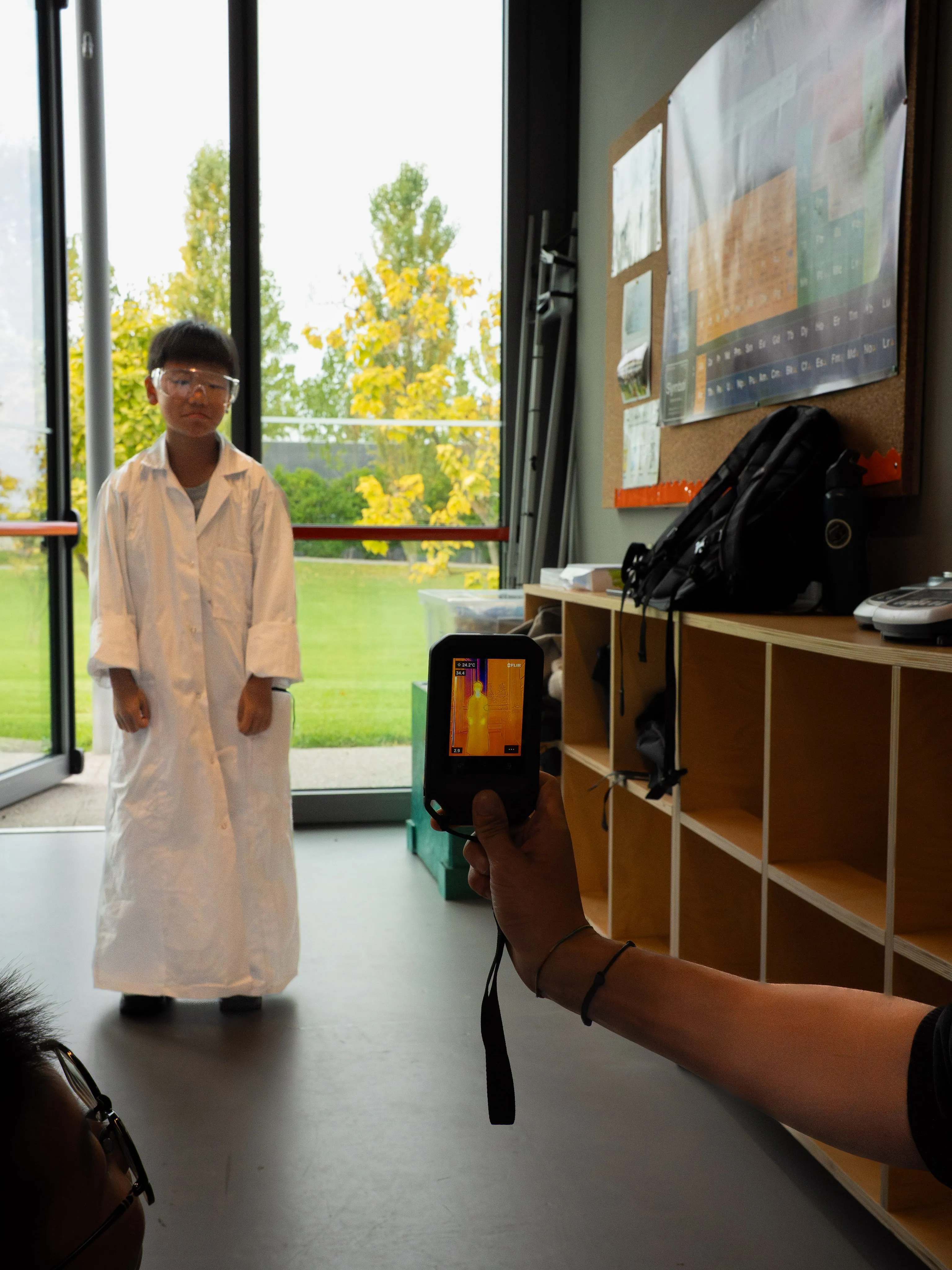 The hands-on component of the activity made everything more concrete. During the heat transfer science lab, students used a thermal camera to “see” heat in action, observing different temperature patterns and visually understanding concepts that were previously only theoretical.
