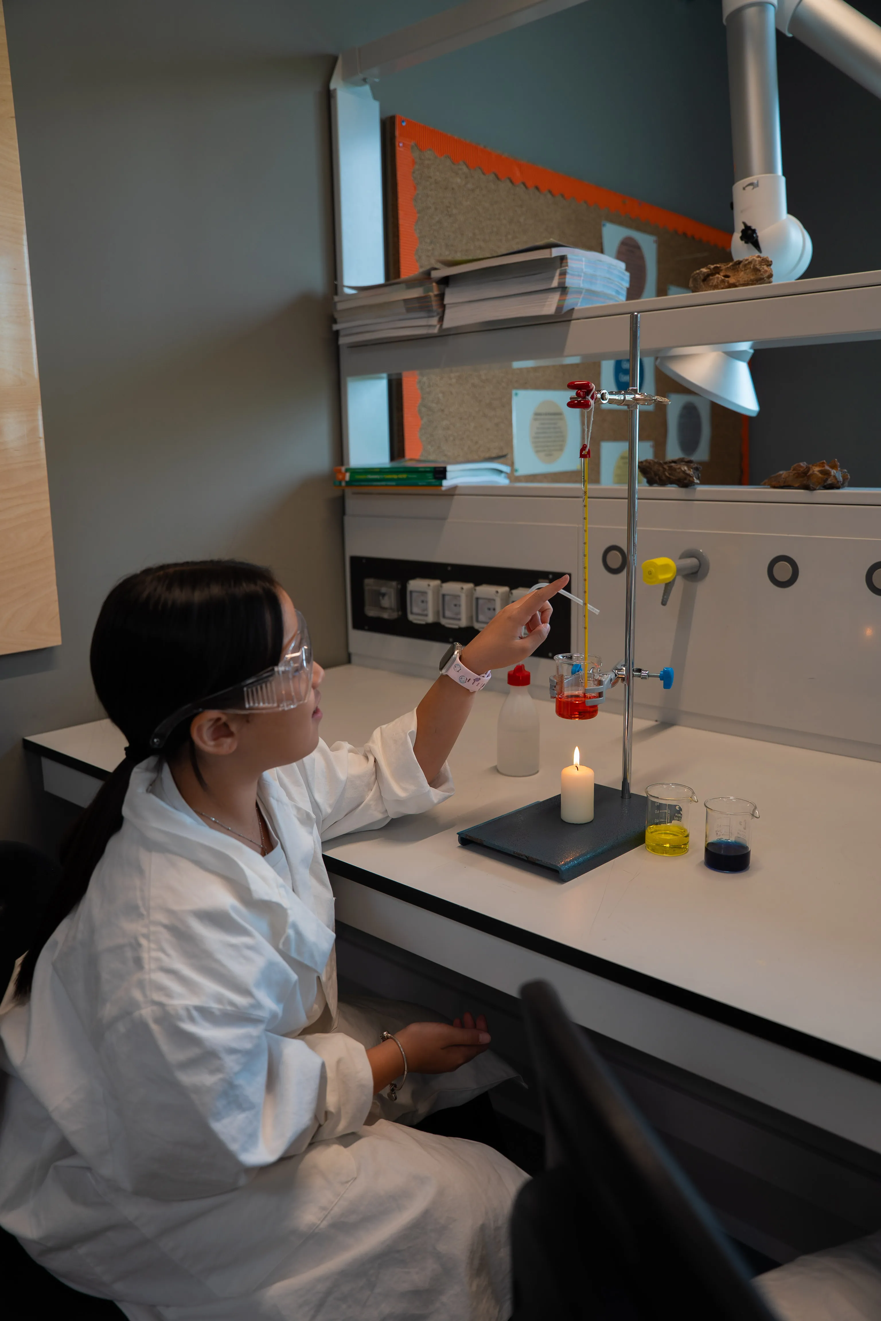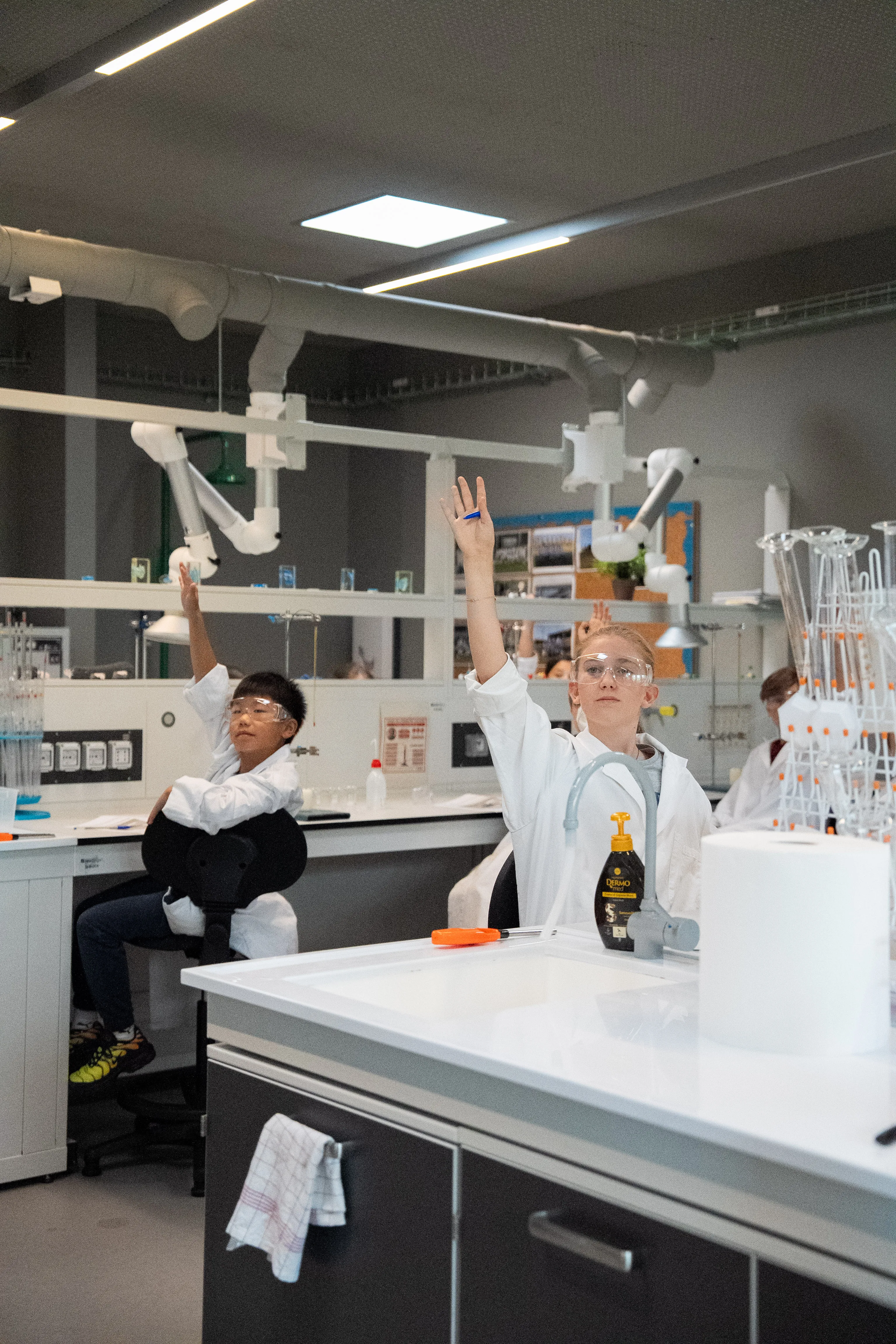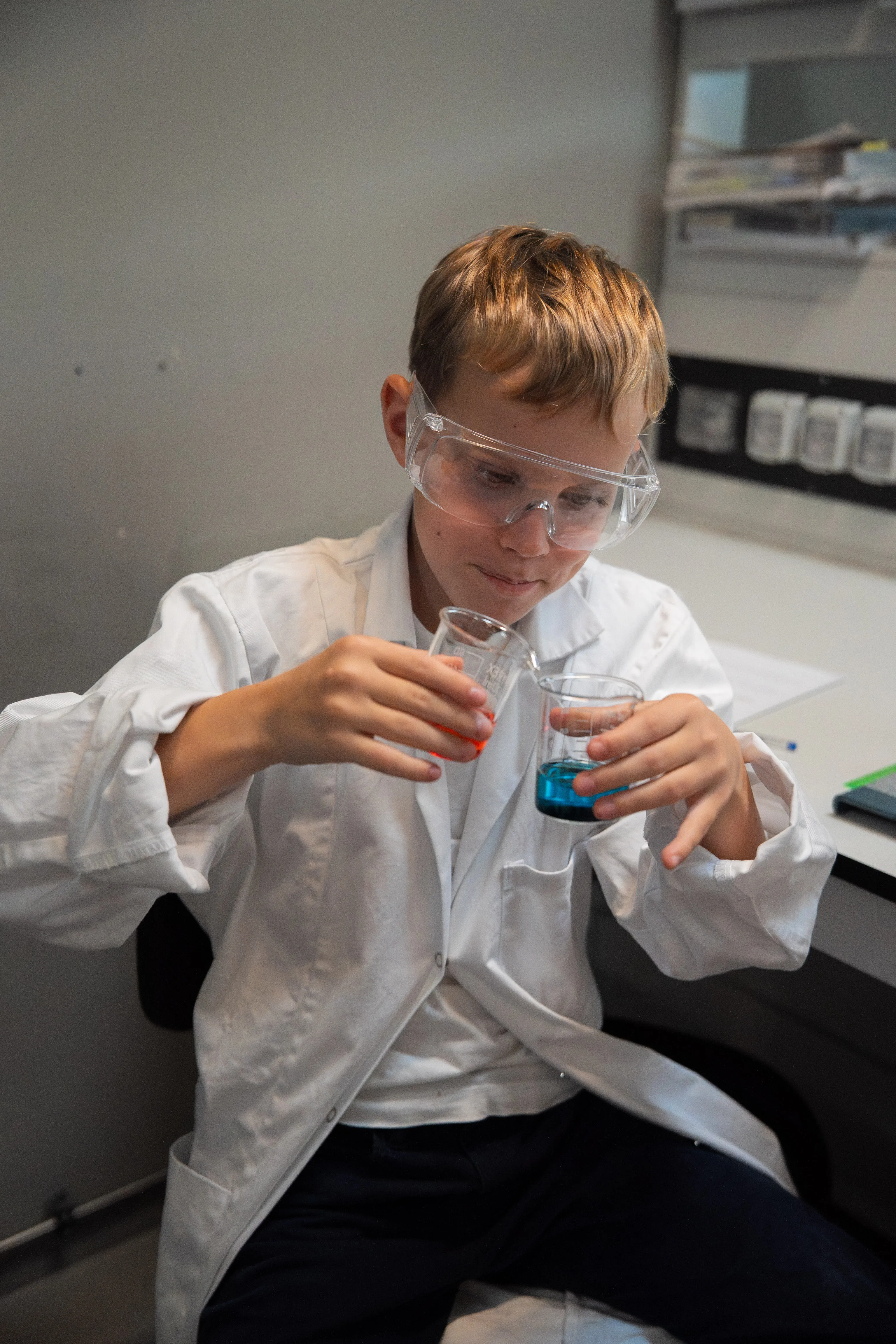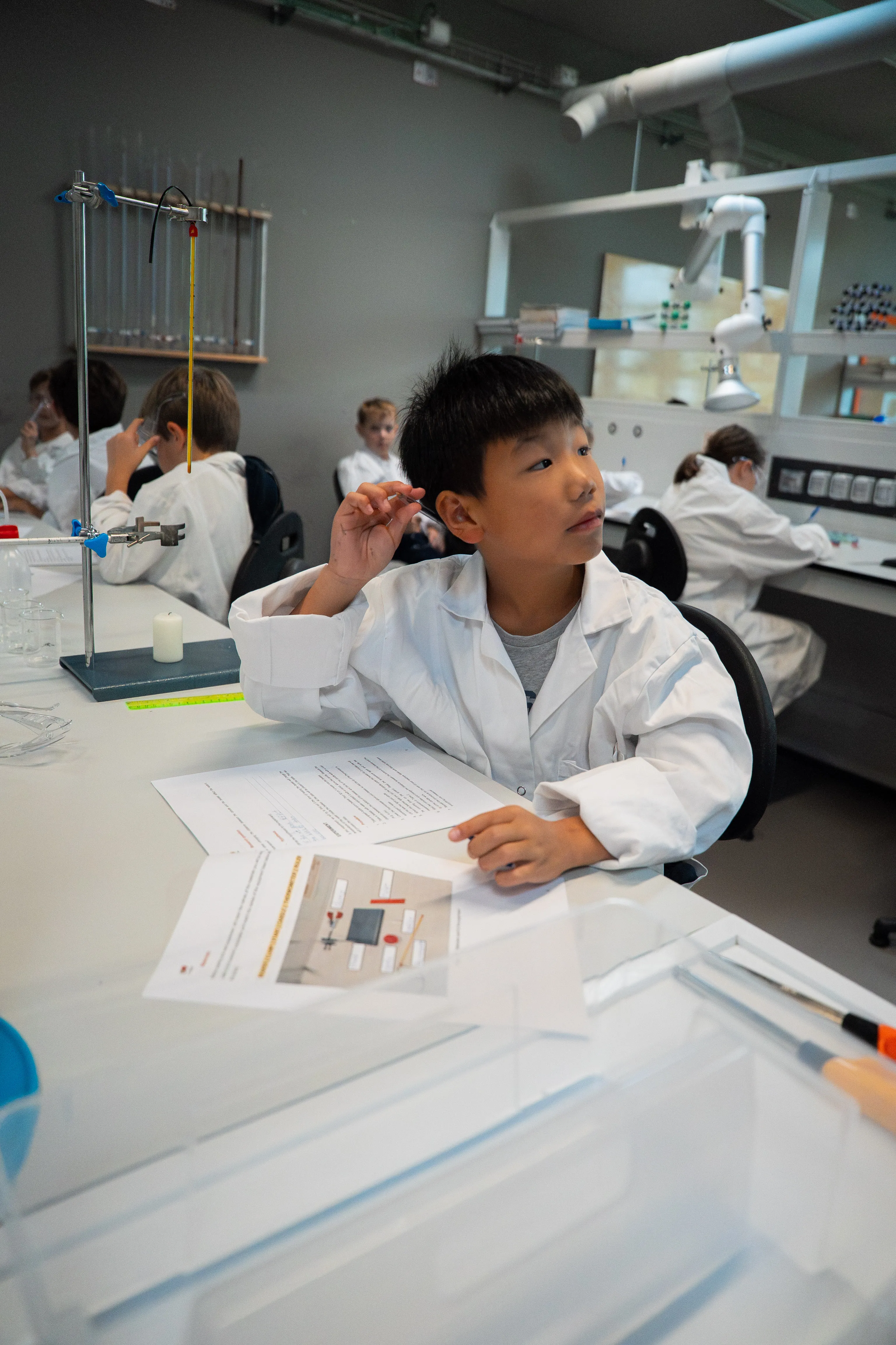 As soon as they stepped into the chemistry lab, the PYP5 students put on lab coats and safety goggles, ready to become real scientists. Guided patiently and attentively by the DP1 students, they closely observed how heat moves from one material to another, discovering that behind a complex concept lies a fascinating world to explore.