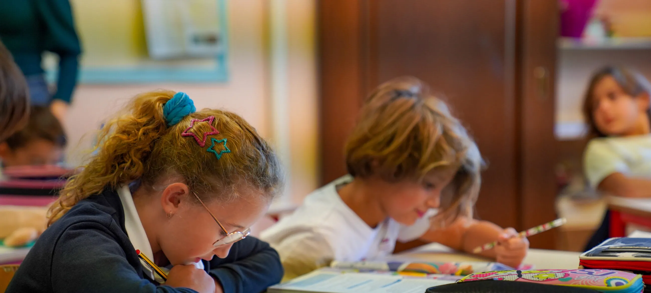 Parents can drop off their children from 8.00 a.m. onwards. The school staff will supervise them until the bell rings at 8.30 when they have access to the classroom.