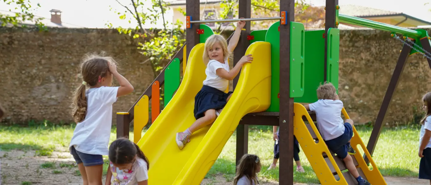 The school is located in an historical villa surrounded by green areas where children have the opportunity to play in contact with nature.