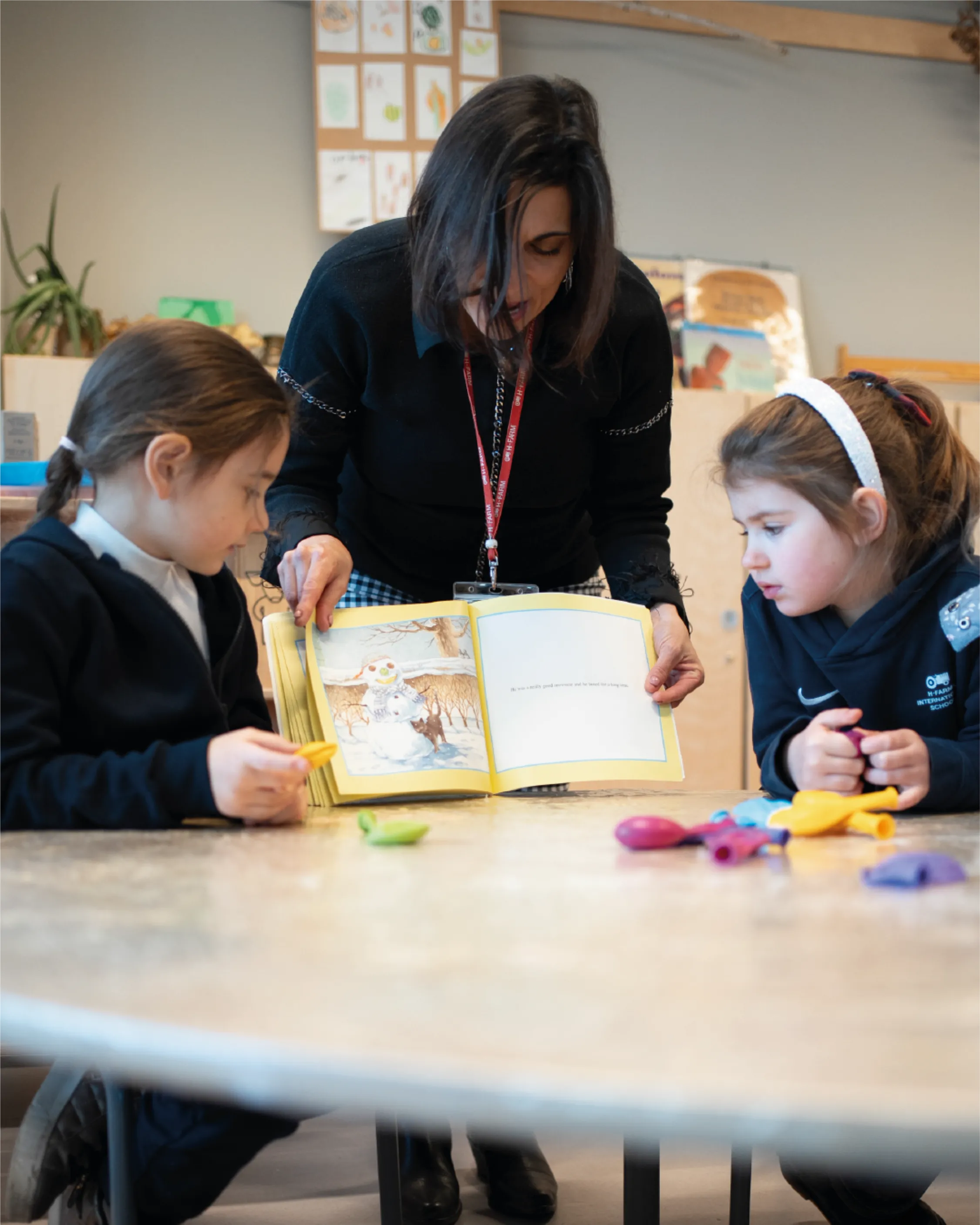 Per introdurre l’argomento, le insegnanti Miss Angela Villanti e Miss Eleni Tsoku hanno utilizzato una storia, “Sadie and the Snowman” di Allen Morgan, come strumento di apprendimento, un modo per collegare i concetti scientifici a situazioni familiari e significative per i bambini. Il racconto ha fornito un contesto concreto di riflessione, favorendo la nascita di domande autentiche. In questo modo, ciò che inizialmente poteva sembrare astratto, come il comportamento del ghiaccio o l’effetto della temperatura, si è collegato all’esperienza quotidiana degli studenti.