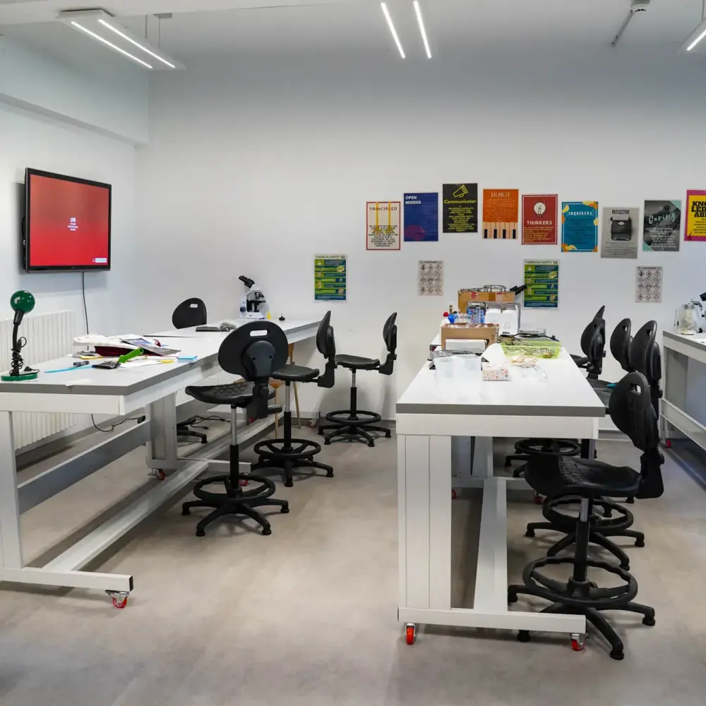 Gli studenti condividono una nuovissima mensa con pareti colorate e piante ornamentali, un laboratorio informatico dotato di iMac e proiettore, due laboratori di scienze per MYP/DP, un’aula di musica e due aule per il supporto linguistico, una palestra spaziosa e ben attrezzata e le biblioteche allestite per PYP e MYP/DP.
